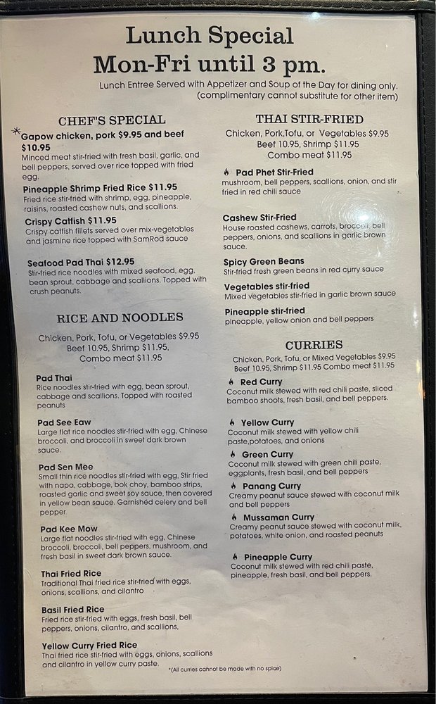 - Signature Dishes: Don’t miss the yellow curry paired with bok choy, alongside delectable pad Thai and pad kee mow that keep patrons returning for more.
