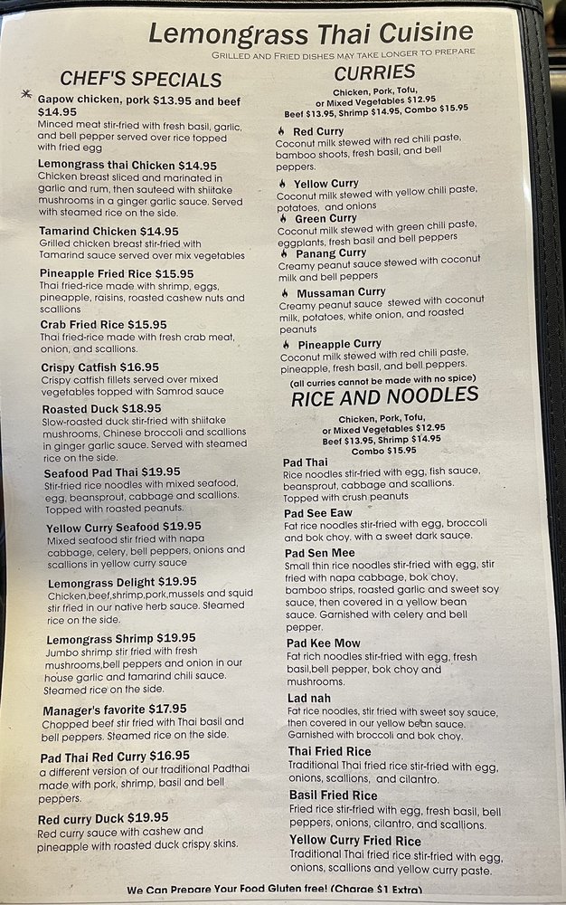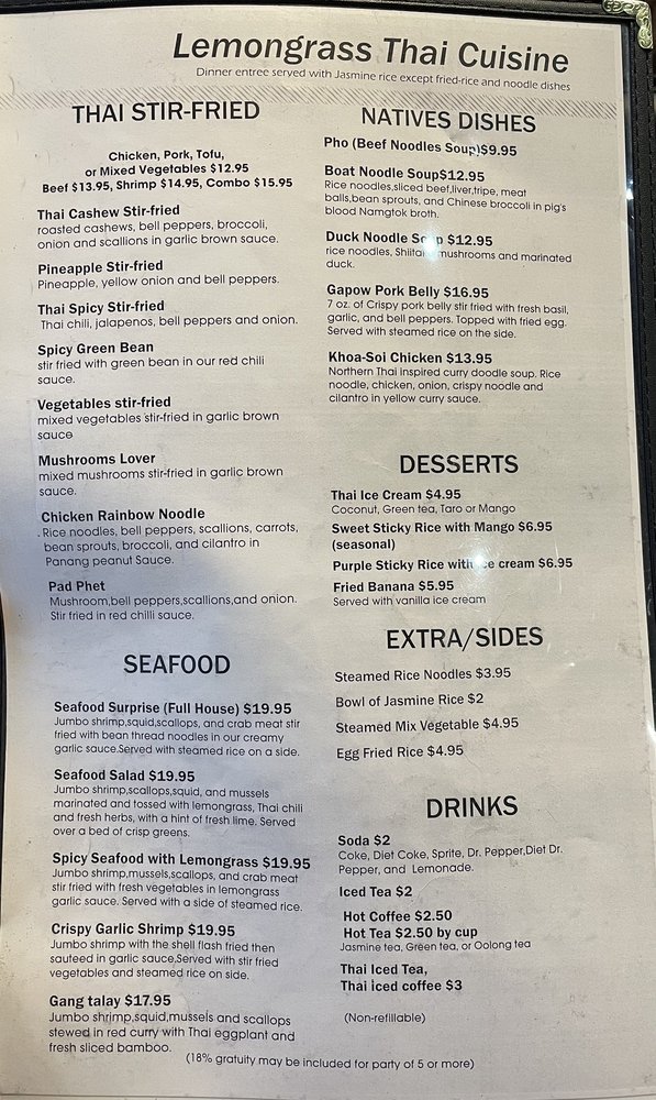 Whether you're dining in or opting for easy takeout, Lemongrass Thai Cuisine promises a satisfying culinary experience. Indulge your senses and revel in the comfort of exceptional Thai cuisine.