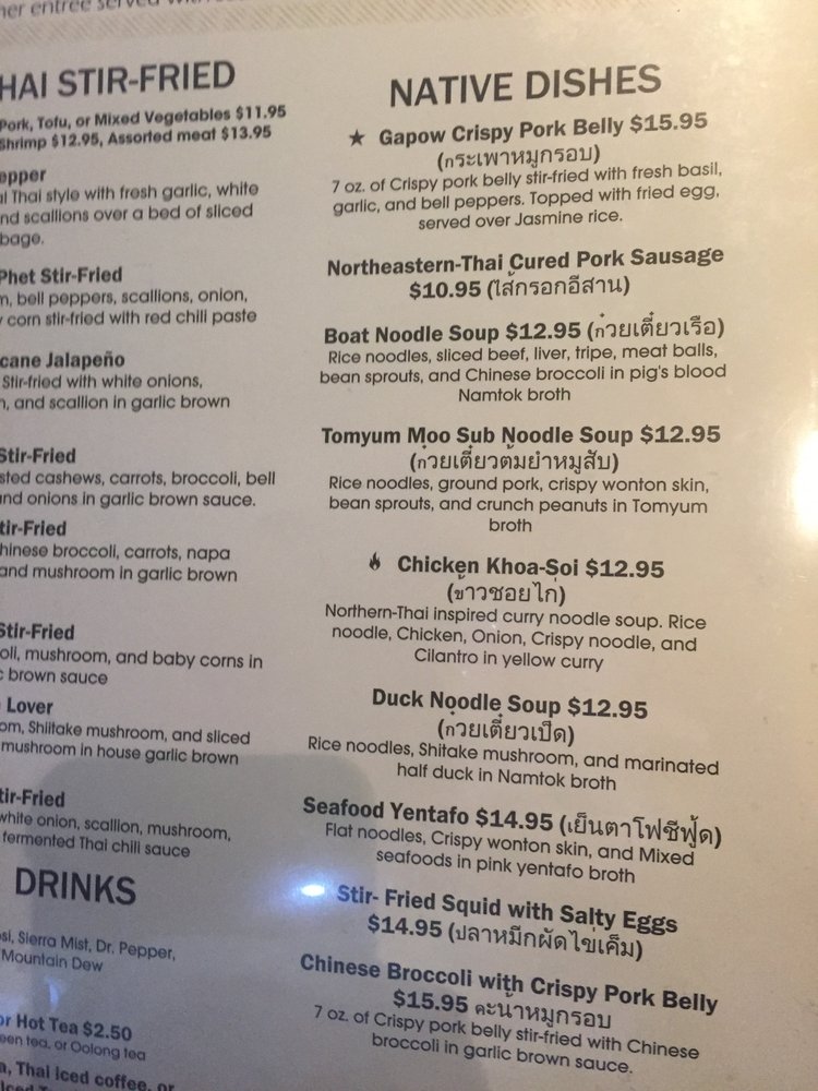 7 oz. of Crispy pork belly stir fried with fresh basil, garlic, and bell peppers. topped with fried egg. served with steamed rice on side.
